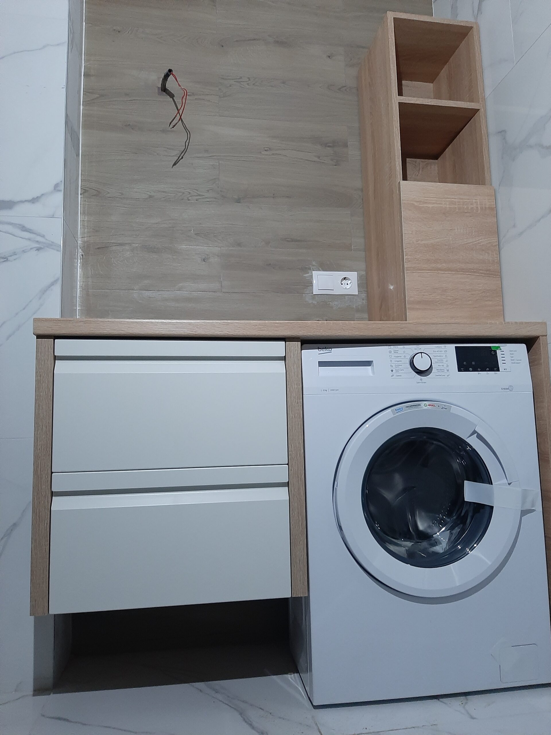 Pentru mobilierul de baie folosim MDF hidrofugat, PAL rezistent la umezeală sau lemn tratat, astfel încât piesele să reziste la aburi și umiditate fără să se deformeze sau deterioreze.