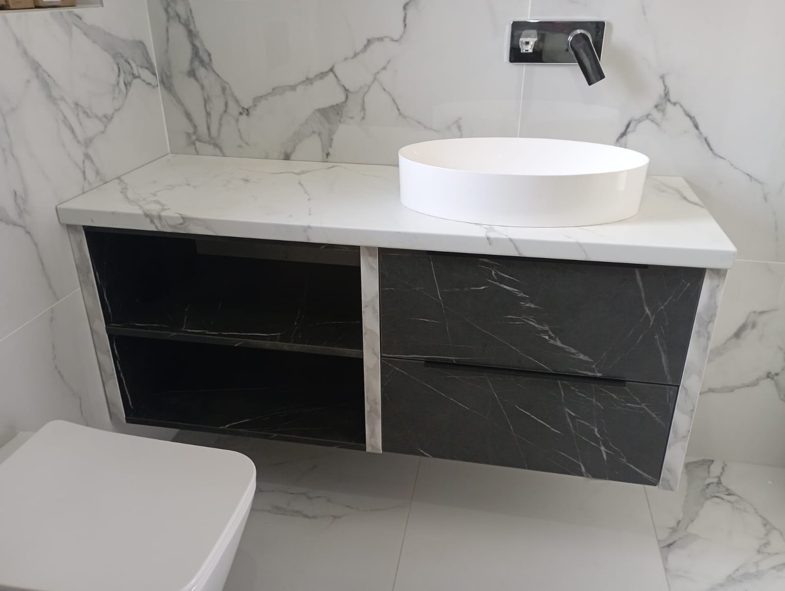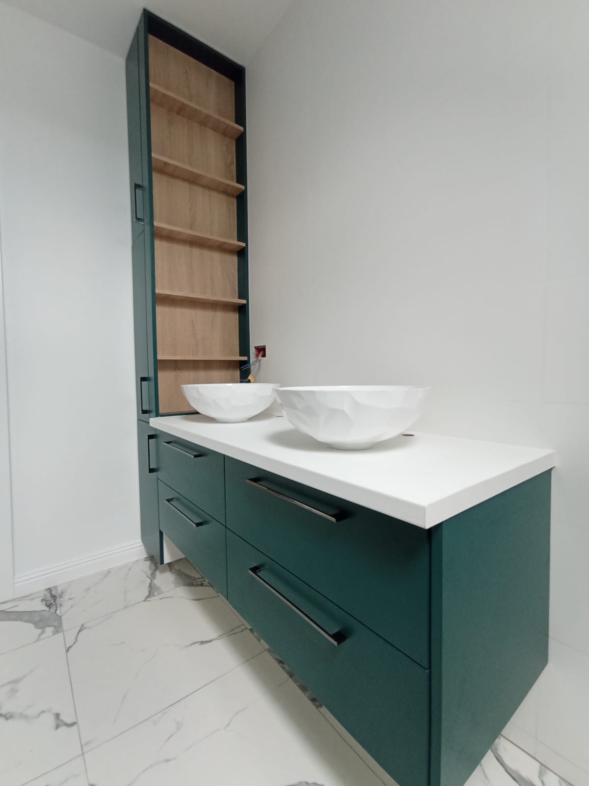 Da. Proiectăm fiecare piesă la dimensiuni exacte și adaptăm forma dulapurilor, colțurilor și rafturilor pentru a folosi eficient spațiul disponibil, chiar și în băi mici sau cu planuri neobișnuite.